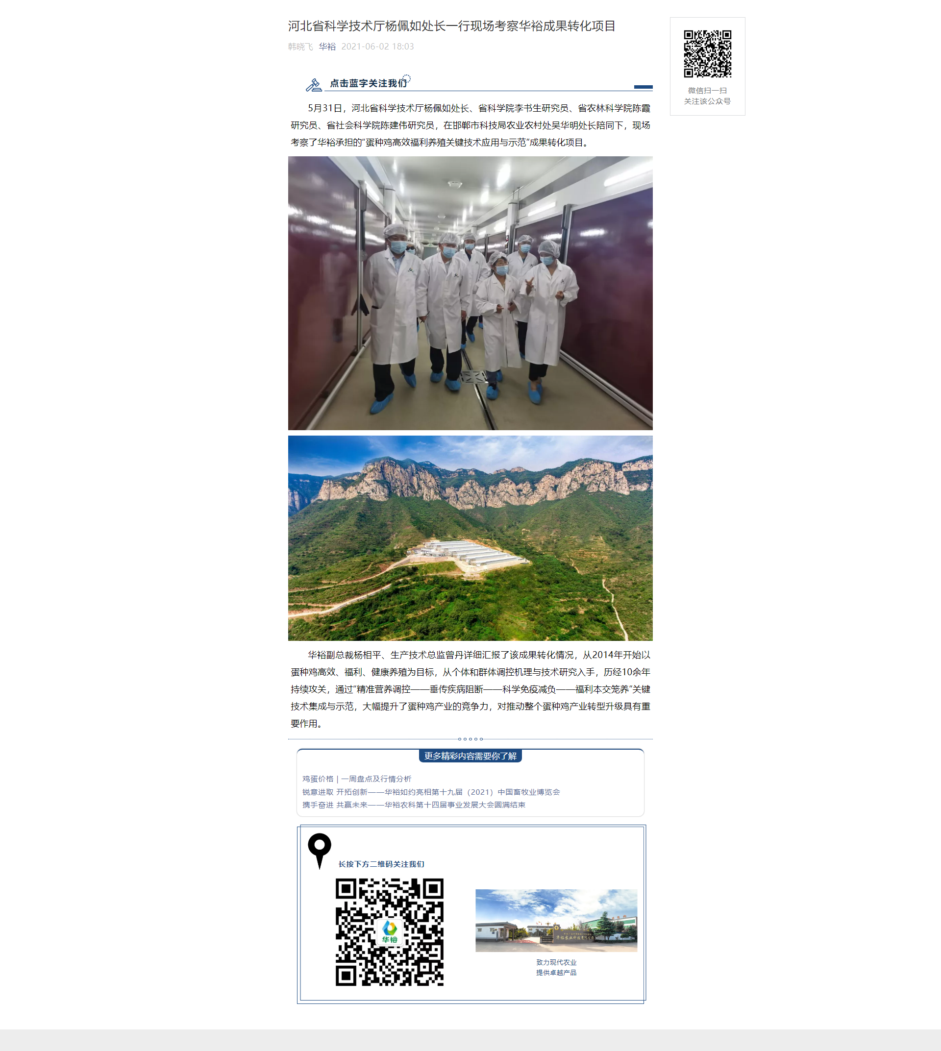 河北省科學技術廳楊佩如處長一行現場考察華裕成果轉化項目