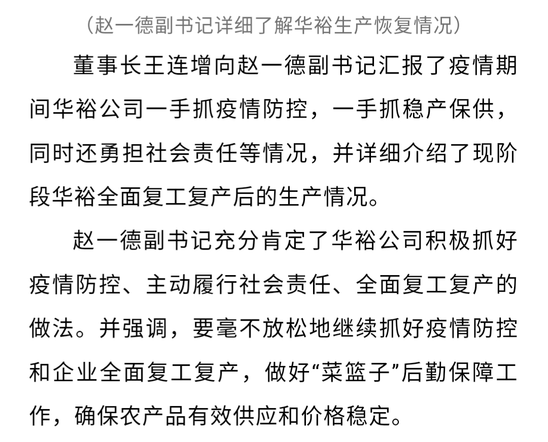 河北省委副書記趙一德蒞臨華裕指導復工復產