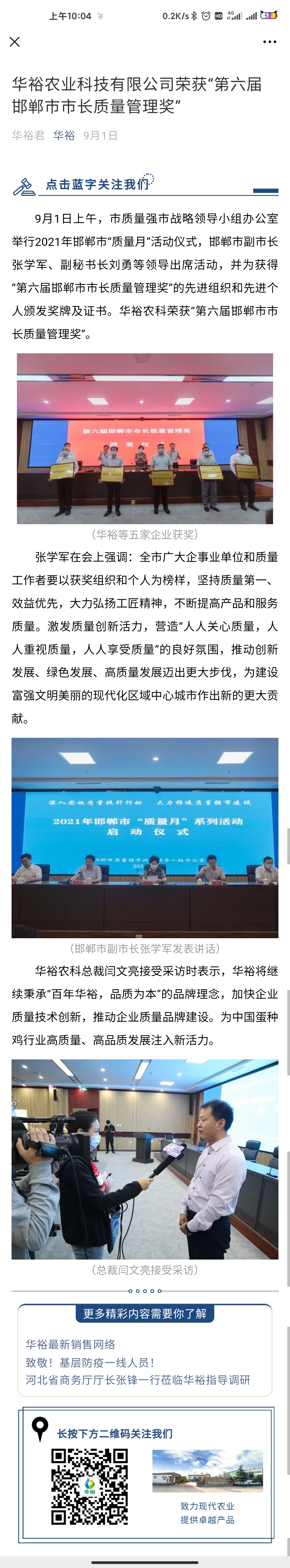華裕農(nóng)業(yè)科技有限公司榮獲“第六屆邯鄲市市長質(zhì)量管理獎(jiǎng)”