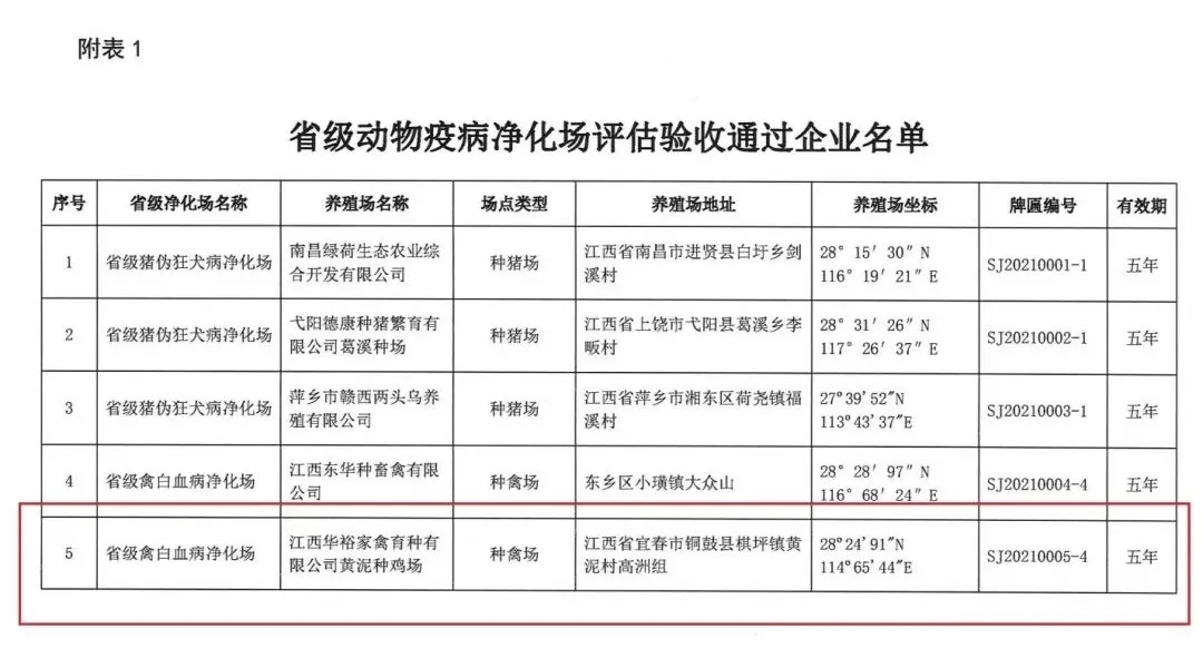 【喜訊】江西華裕黃泥基地獲得“省級禽白血病凈化場”稱號